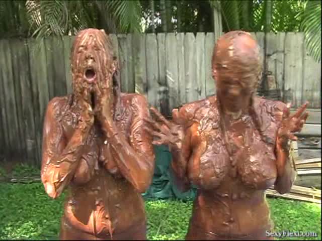 Megan & Nikki gunged in chocolate with pantyhose