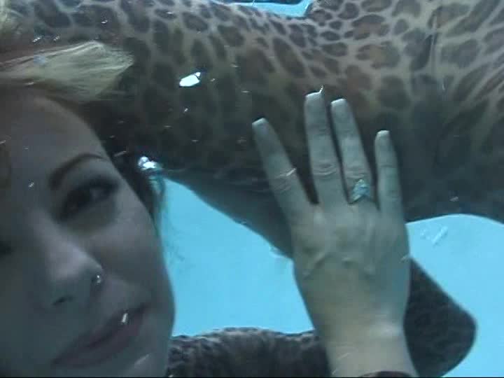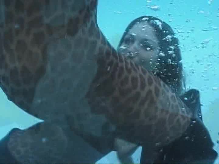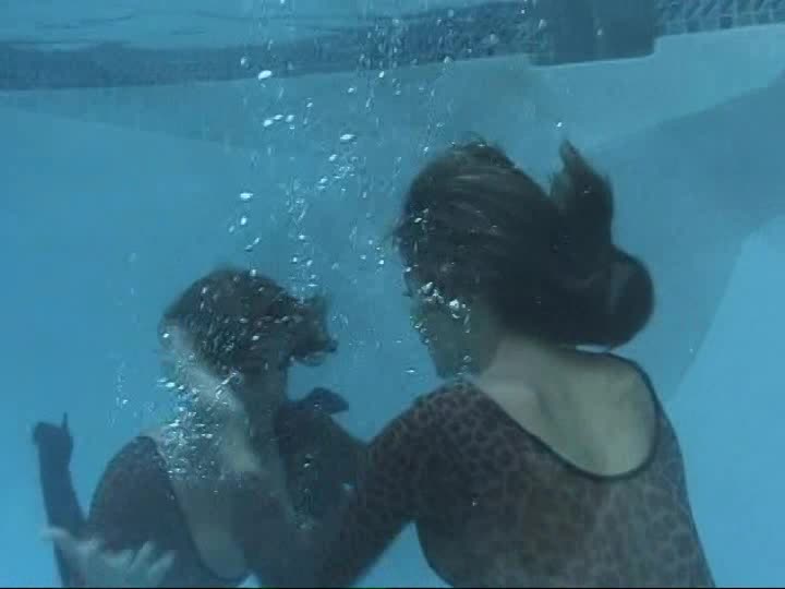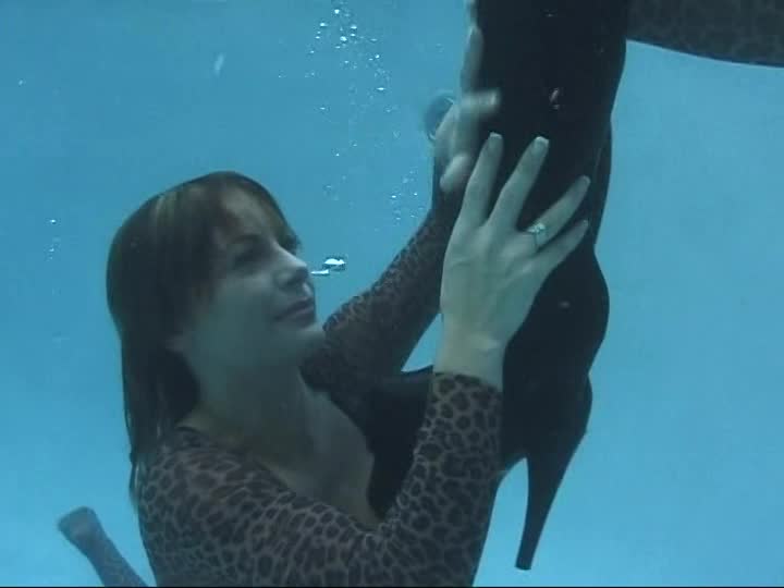 LL series - Sarah and Taylor play in leopard skin catsuits and thigh boots in wetlook and underwater scenes.
