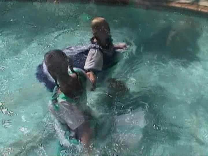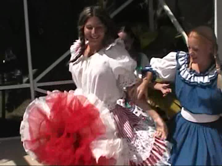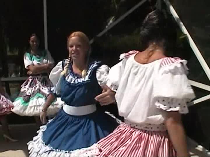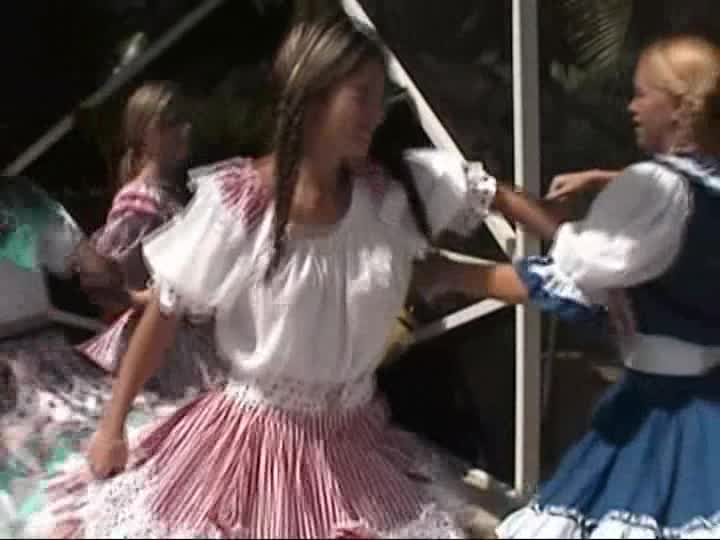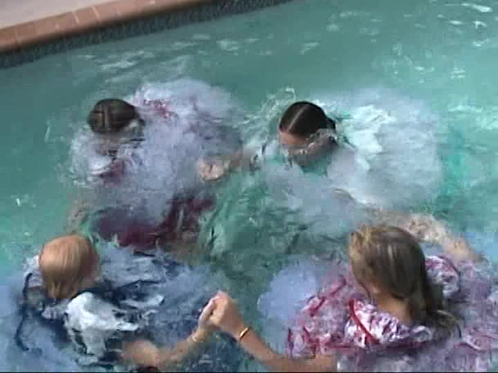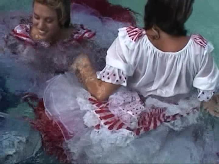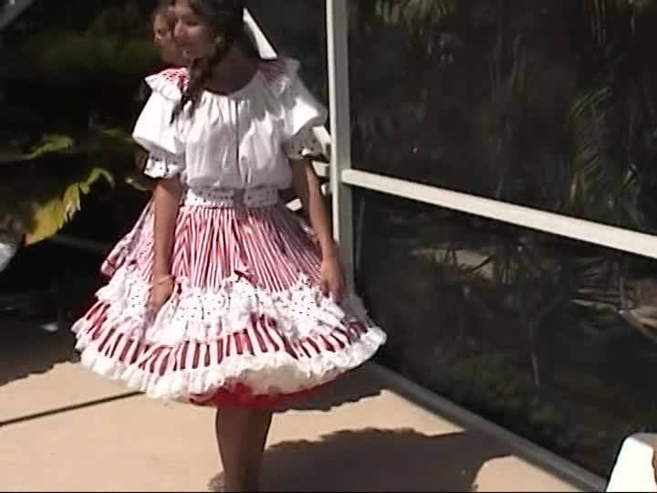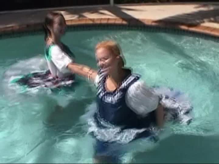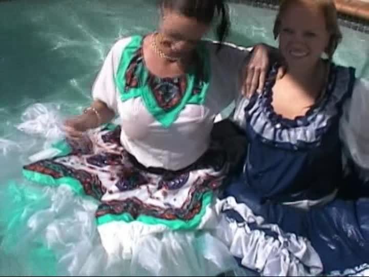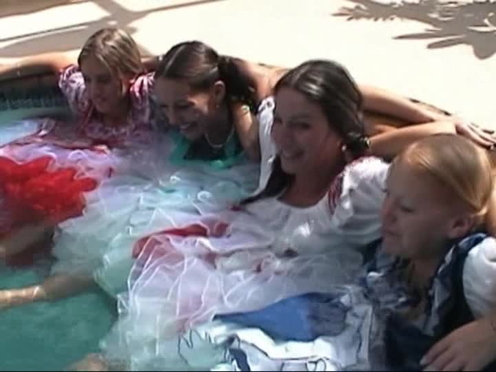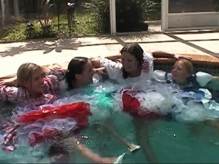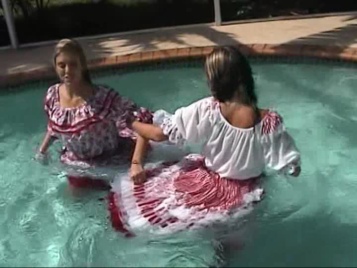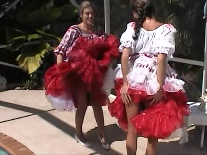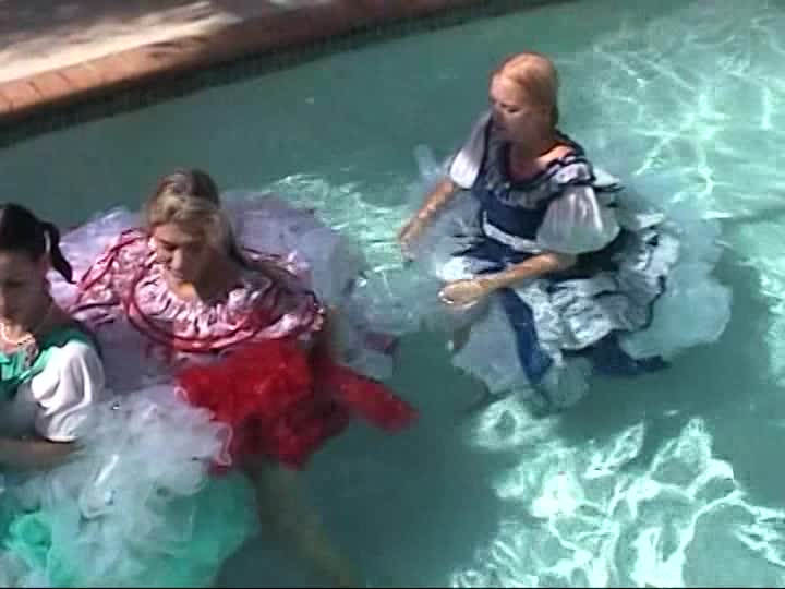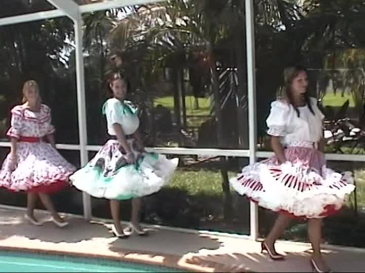 Square Dancers. A customer sponsored shoot using real square dancing dresses, bloomers & pantyhose in the pool (31 mins)