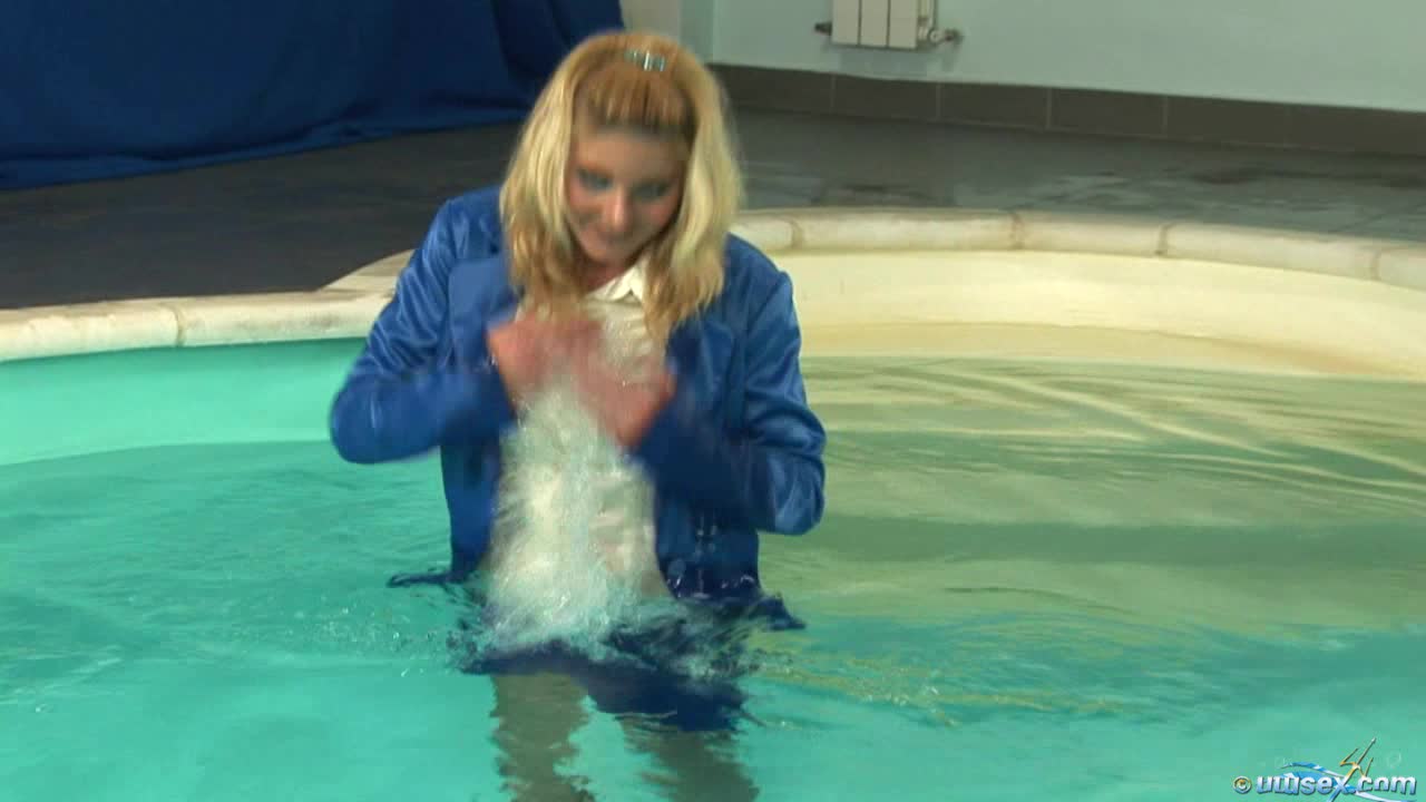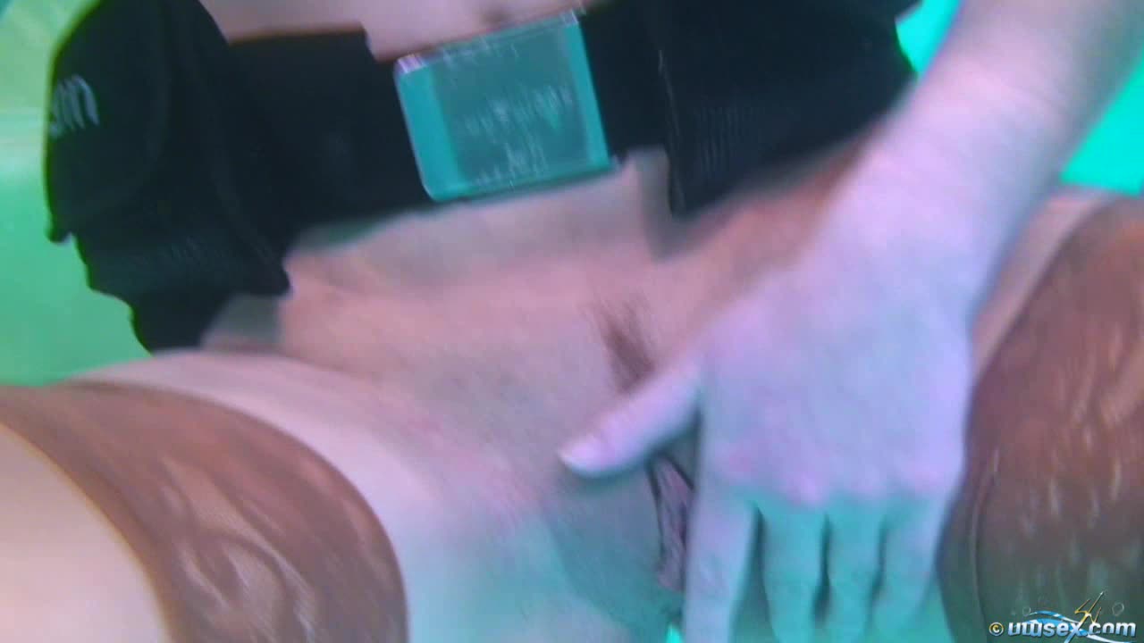 Underwater Sex series: A fully clothed model in stockings plays underwater in the pool and pleasures herself. X rated