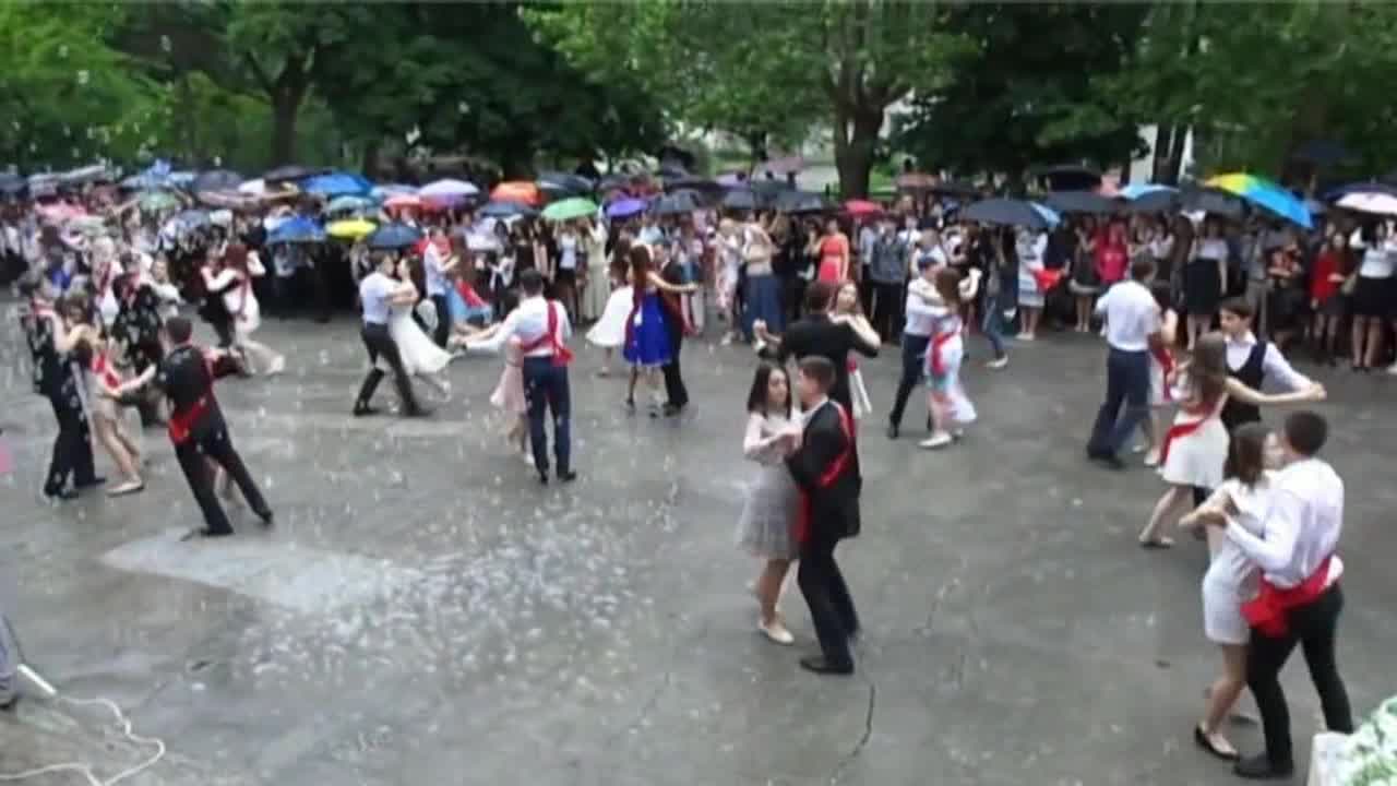 Russian Wetlook Prom Girls in the rain