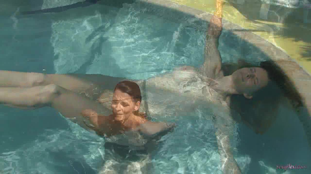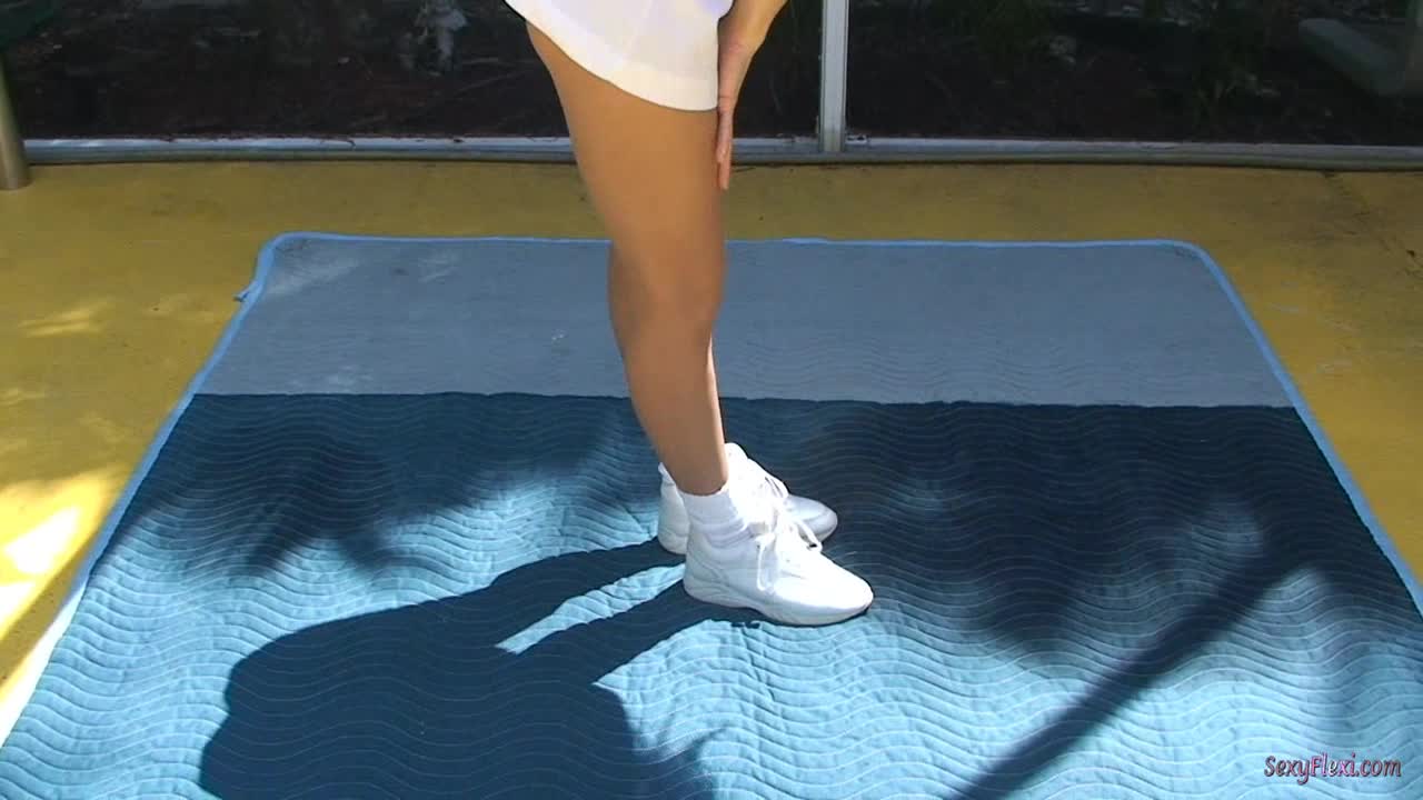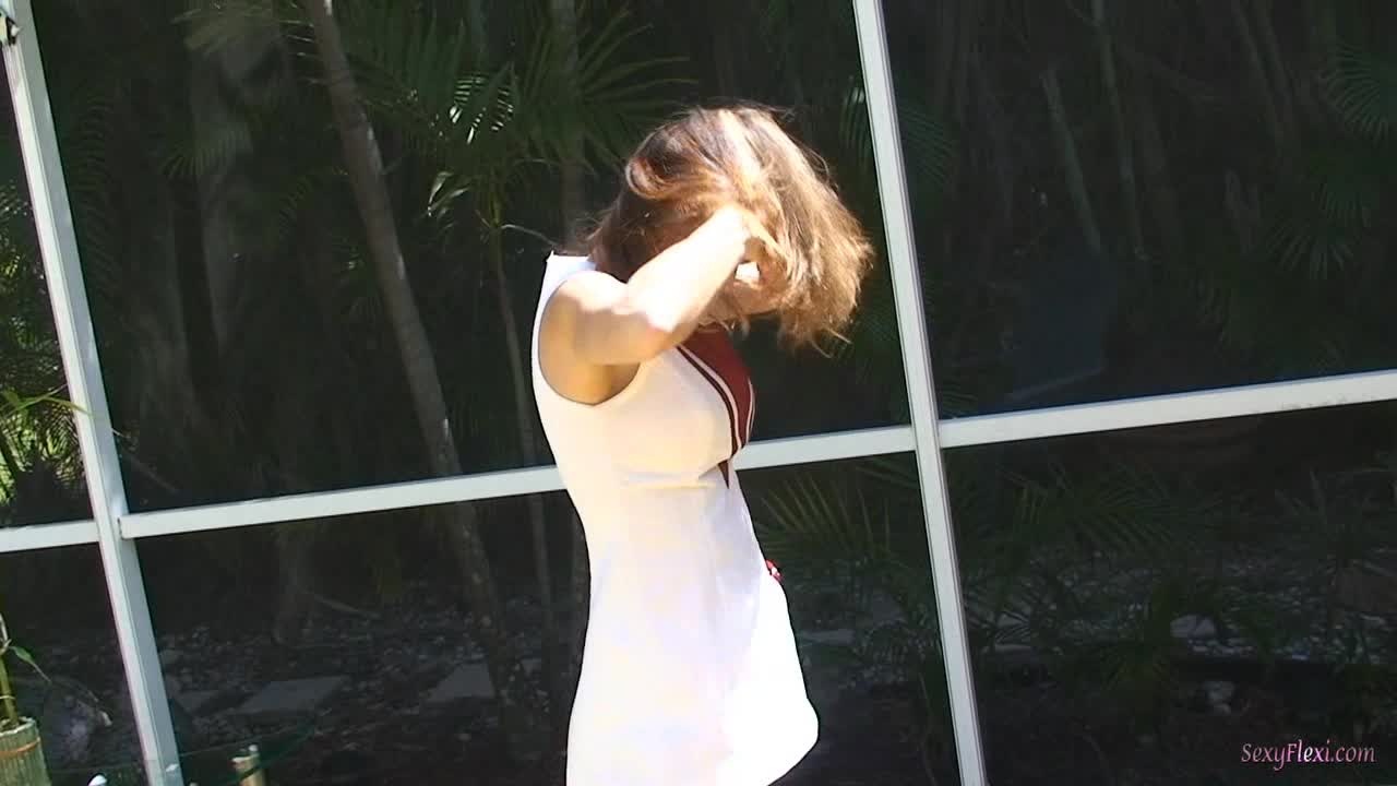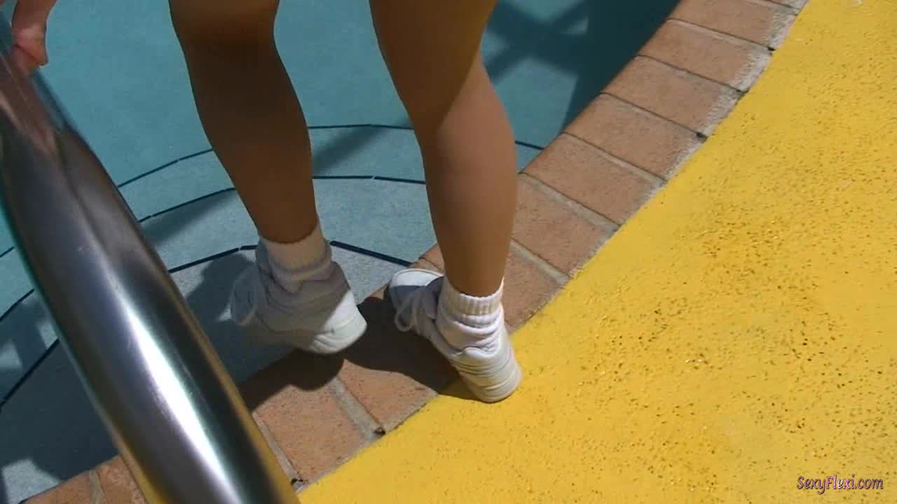 Chantelle in a tennis dress with socks and pantyhose in the pool