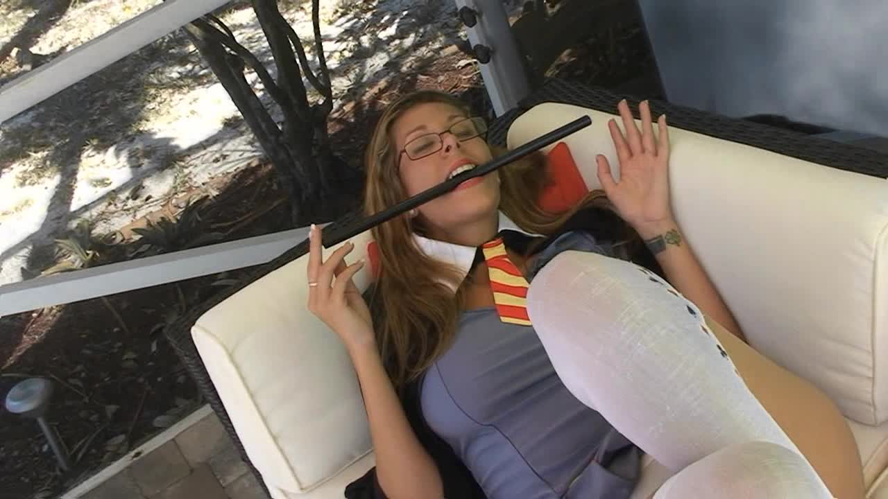 Hermione gets Busted, part 1: Nikki plays Harry Potter girl Hermione who gets busted by sexy cop Tatiana.