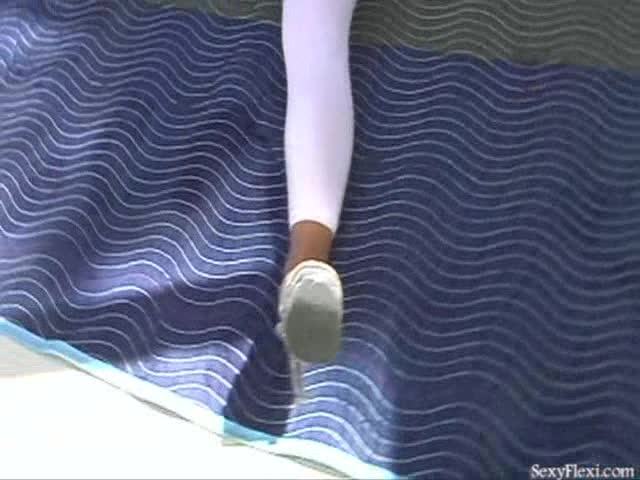 Megan in white leggings and pantyhose