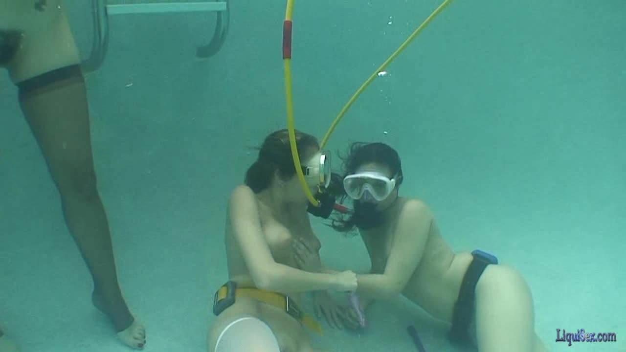 The pool party gets a LOT wilder and then the it`s time for some long hose regulator fun and a `triple play` of hardcore dildo action.
