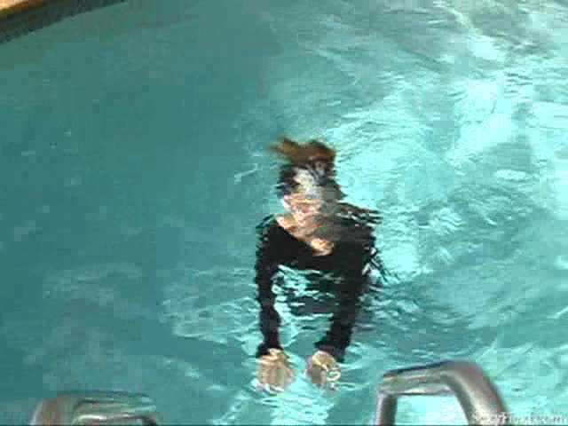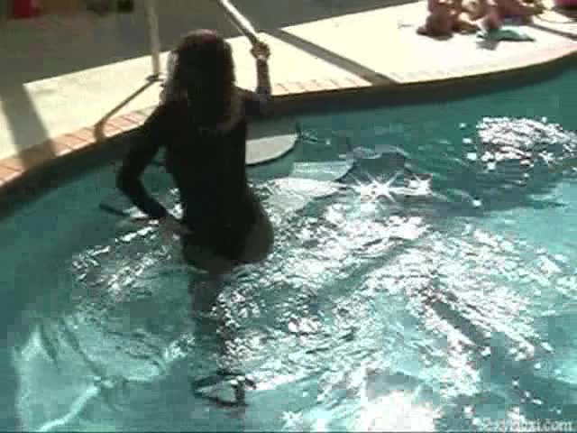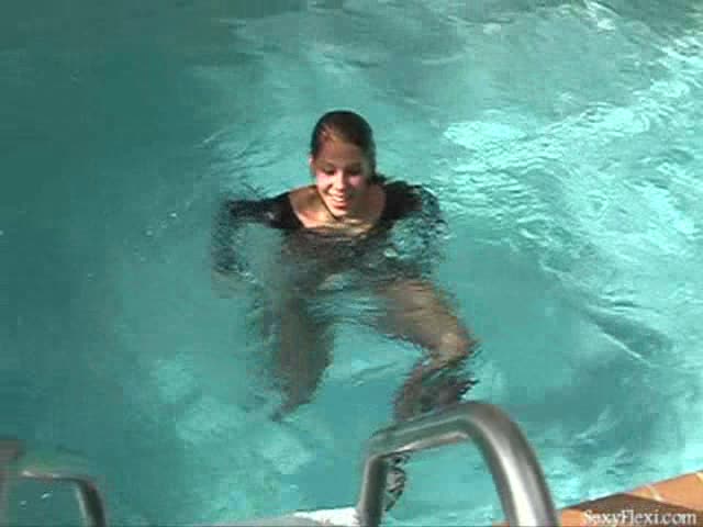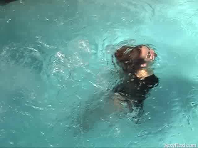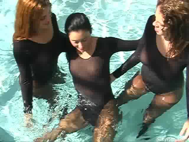 Lissa, Heather and Nikki in black leotards and pantyhose in the pool.
