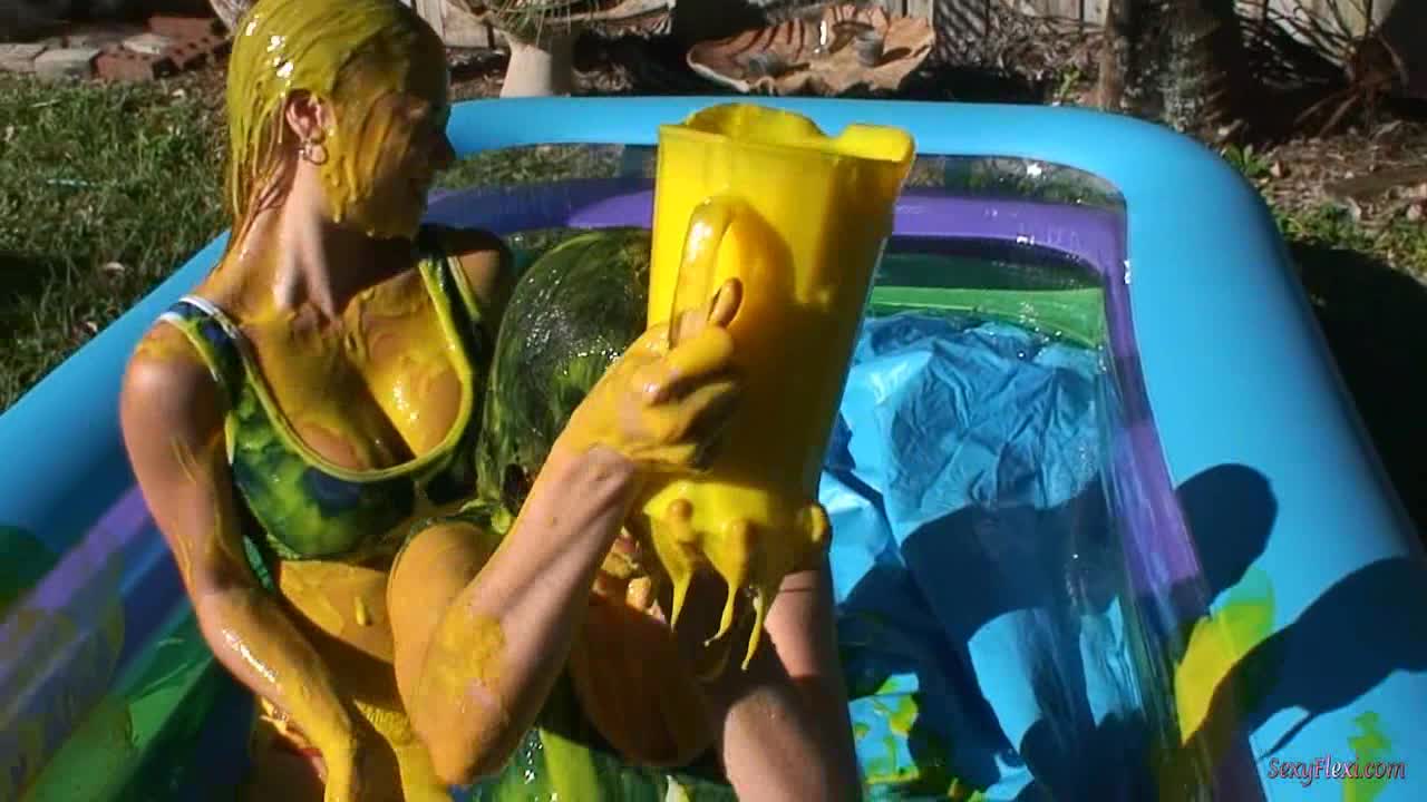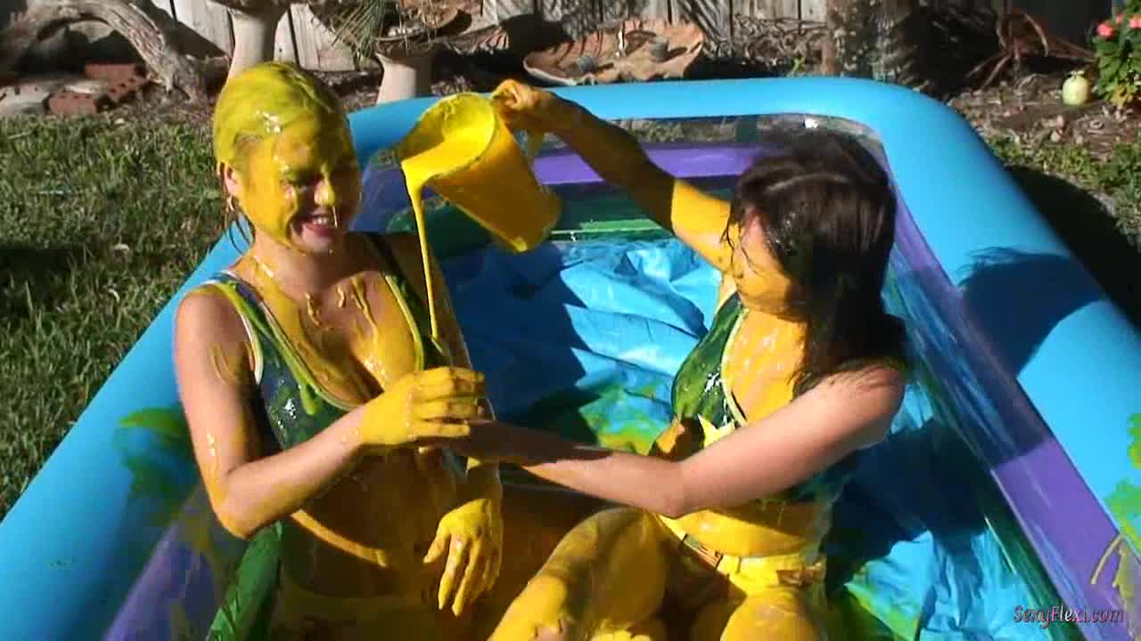 Katie and Tatiana in Yellow Slime