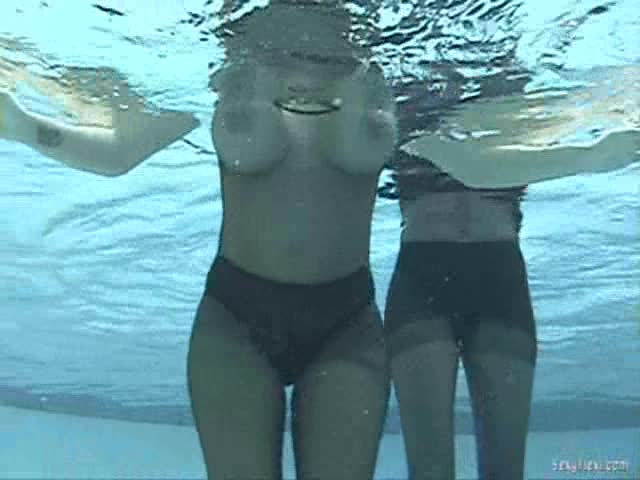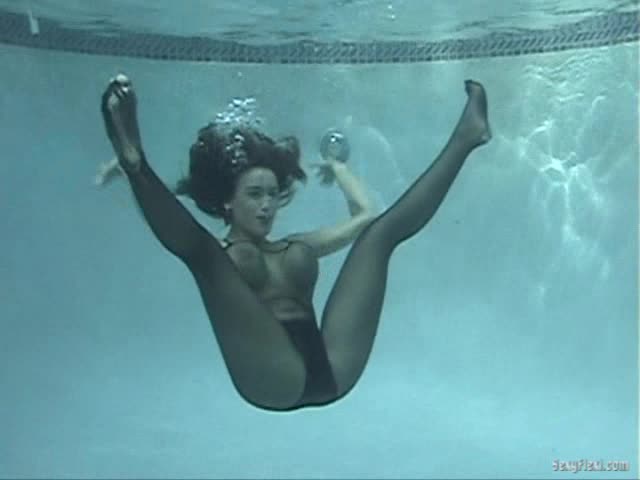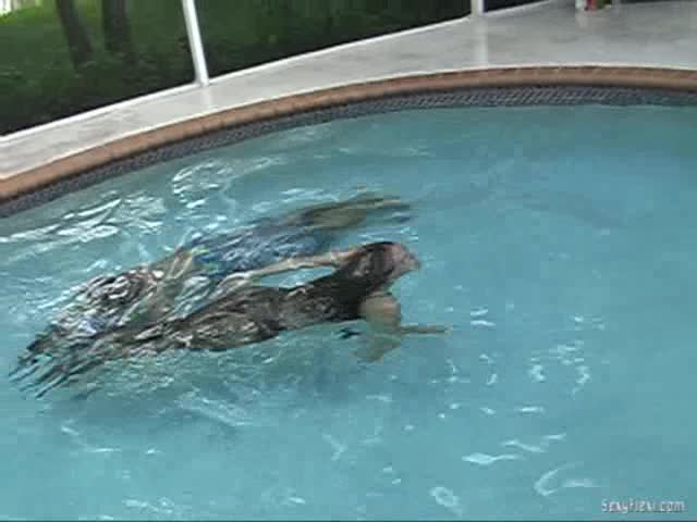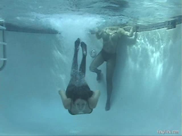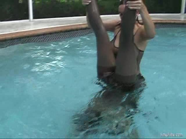 Nikki and Megan in the pool. Wetlook and Underwater pantyhose