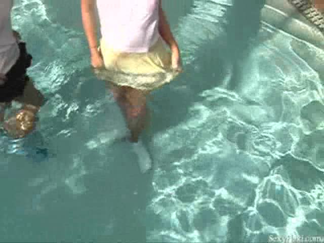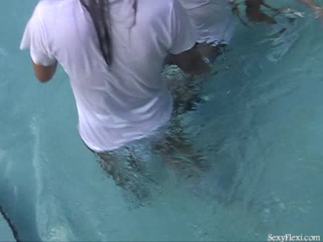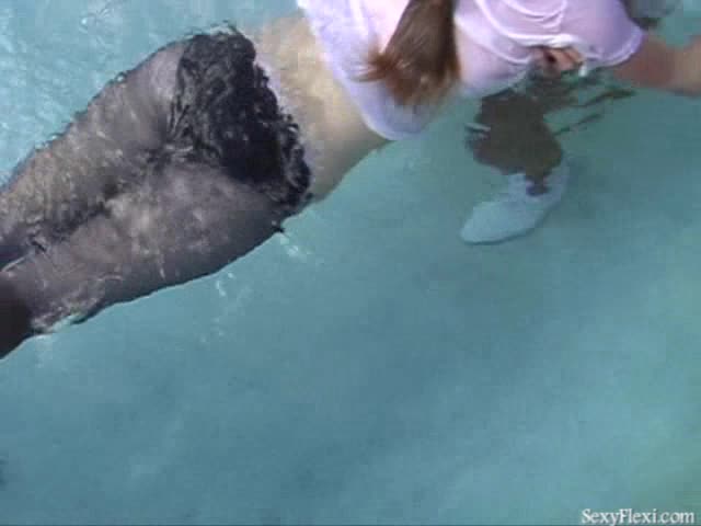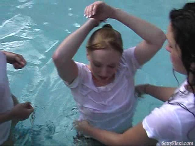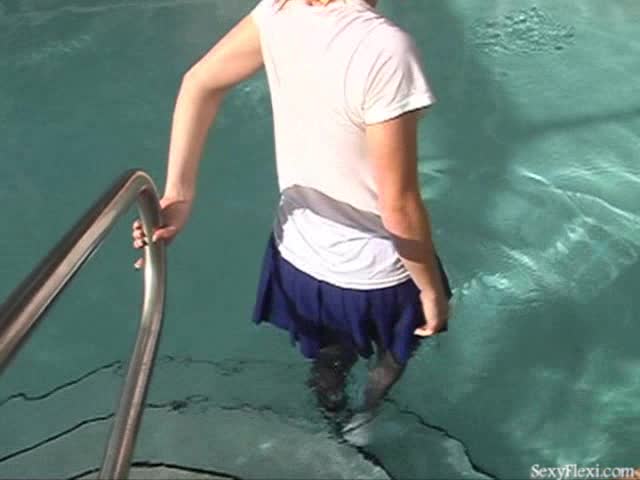Lissa, Megan and Sandra in the pool in tennis outfits w/pantyhose