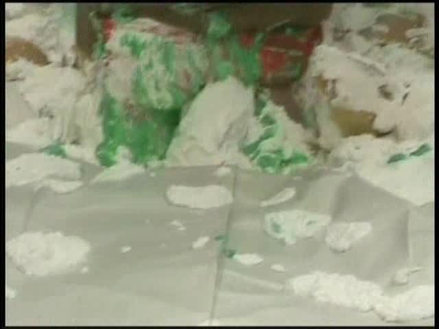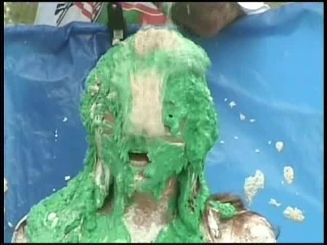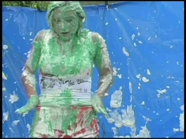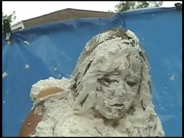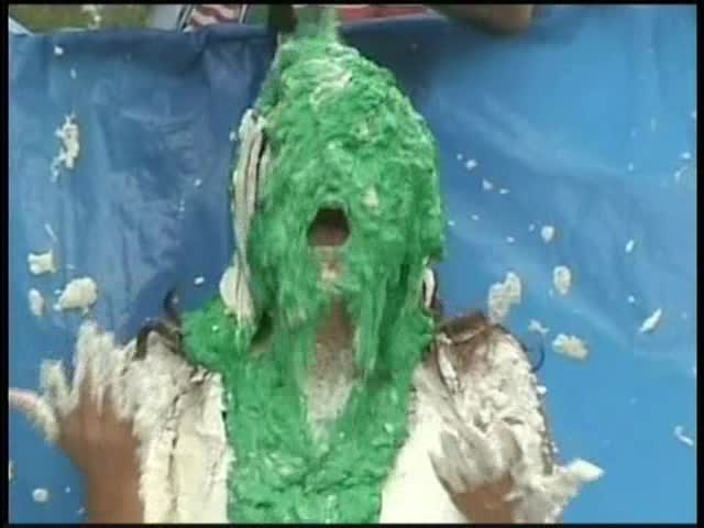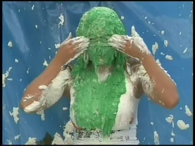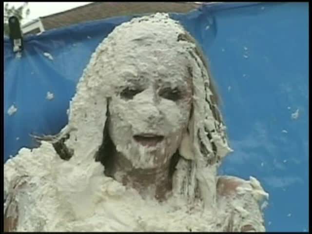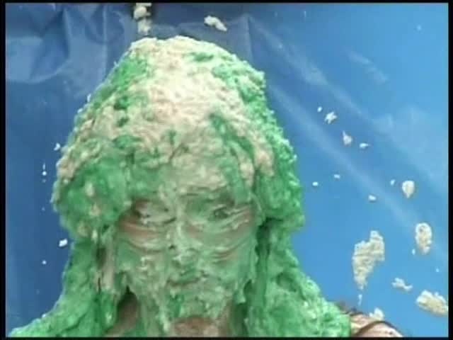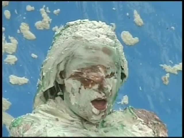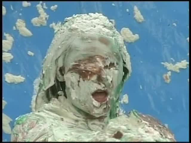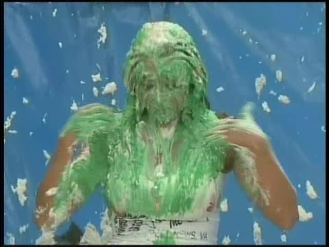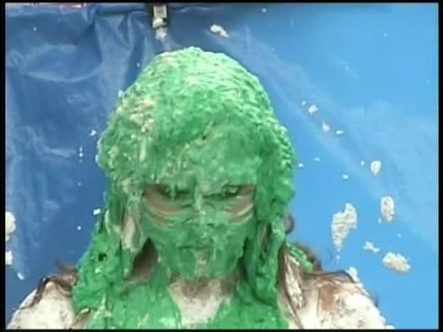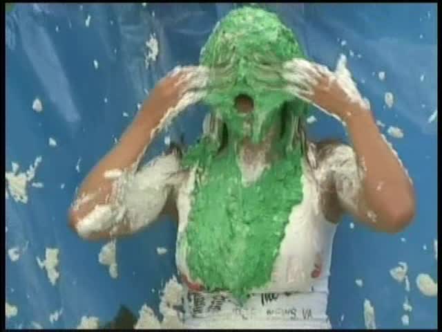 HOOTERS HOSTESS.Christina is a Hooters gal serving a customer. The customer is menacing her with cream pies and finally starts throwing them at her.