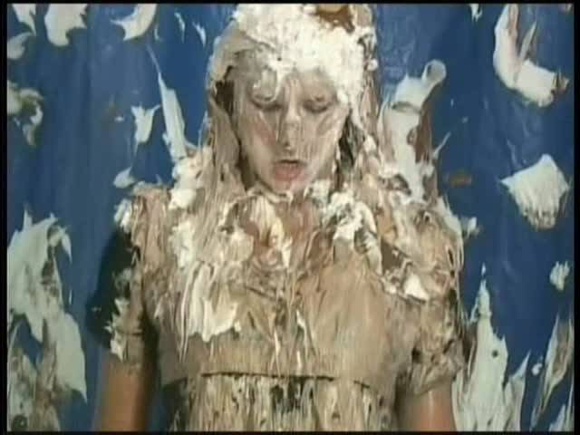 Custom Pie Vioeo. Veronica is a Bennigans waitress taking a customers order. His order is for her to get water and slime and chocolate poured over her and hit in the face with loads of pies.