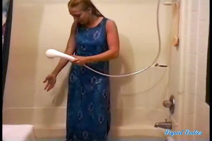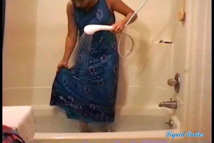 Rose has a bath in her blue dress
