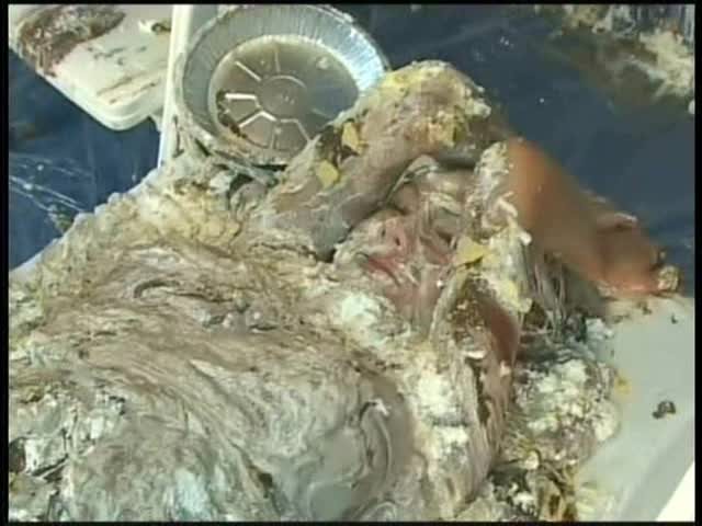 Sasha ties Crystal up and pours oil and eggs and syrup and chocolate sauce on her…puts whip cream and ice cream inside her panties… Crystal finally escapes and ties Sasha up and gives her the same treatment.