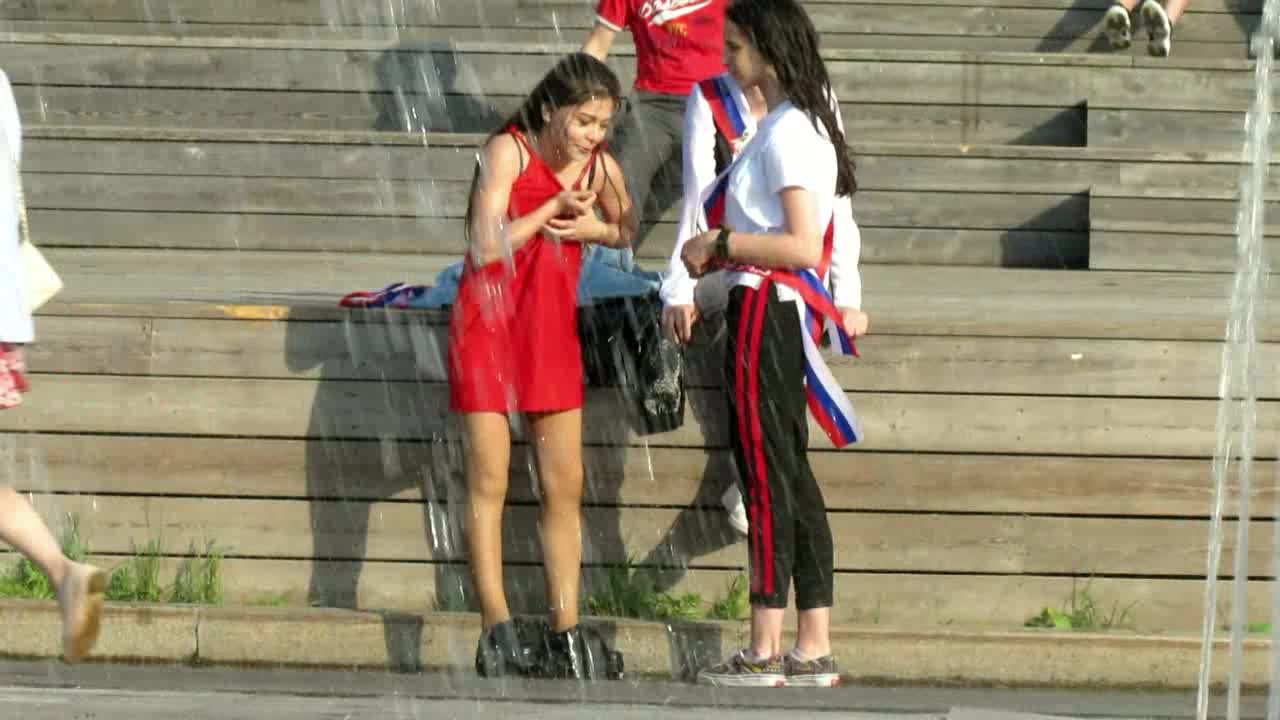 Vol SGHD255: Russian Fountains Girls series. Wetlook College Girls in the Fountains. The latest wetlook events from Moscow.