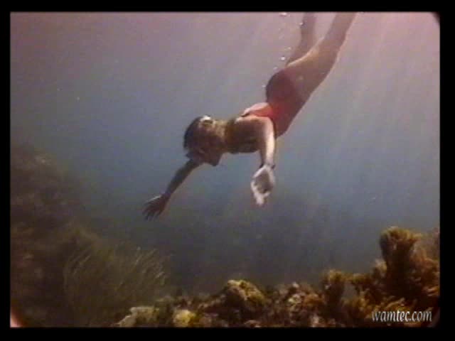 Micki freediving in pantyhose