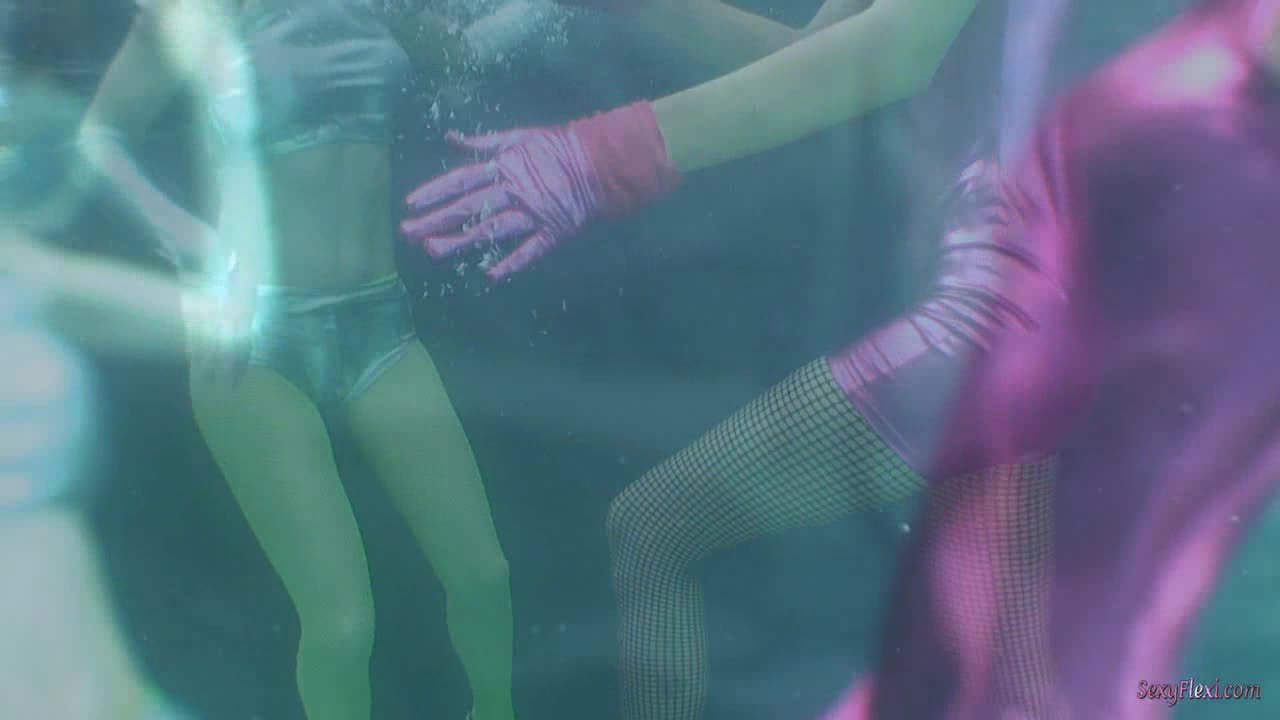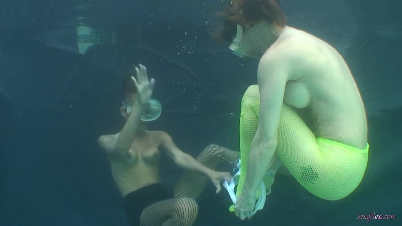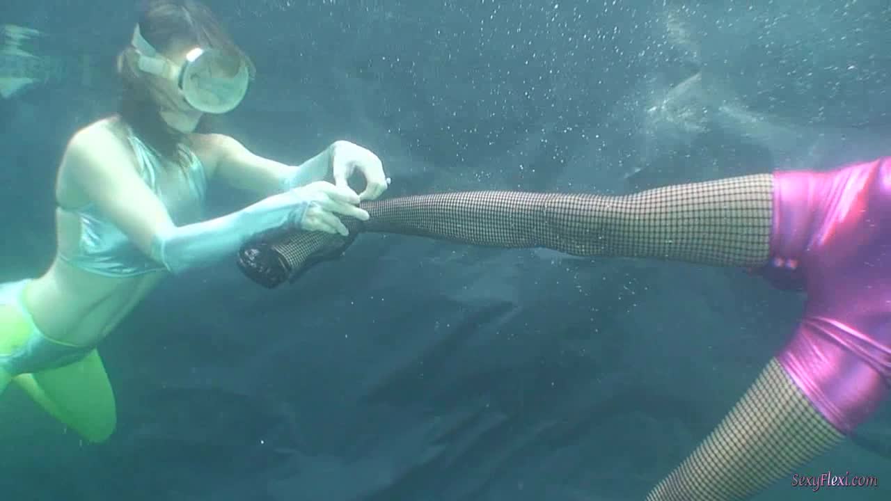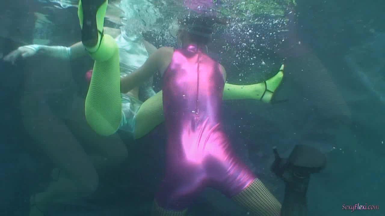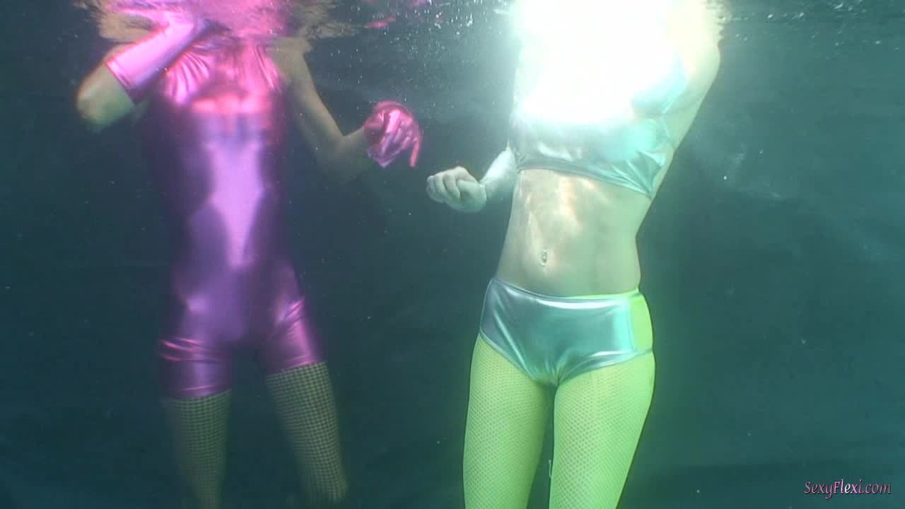 Cali and Chantelle underwater in neon.