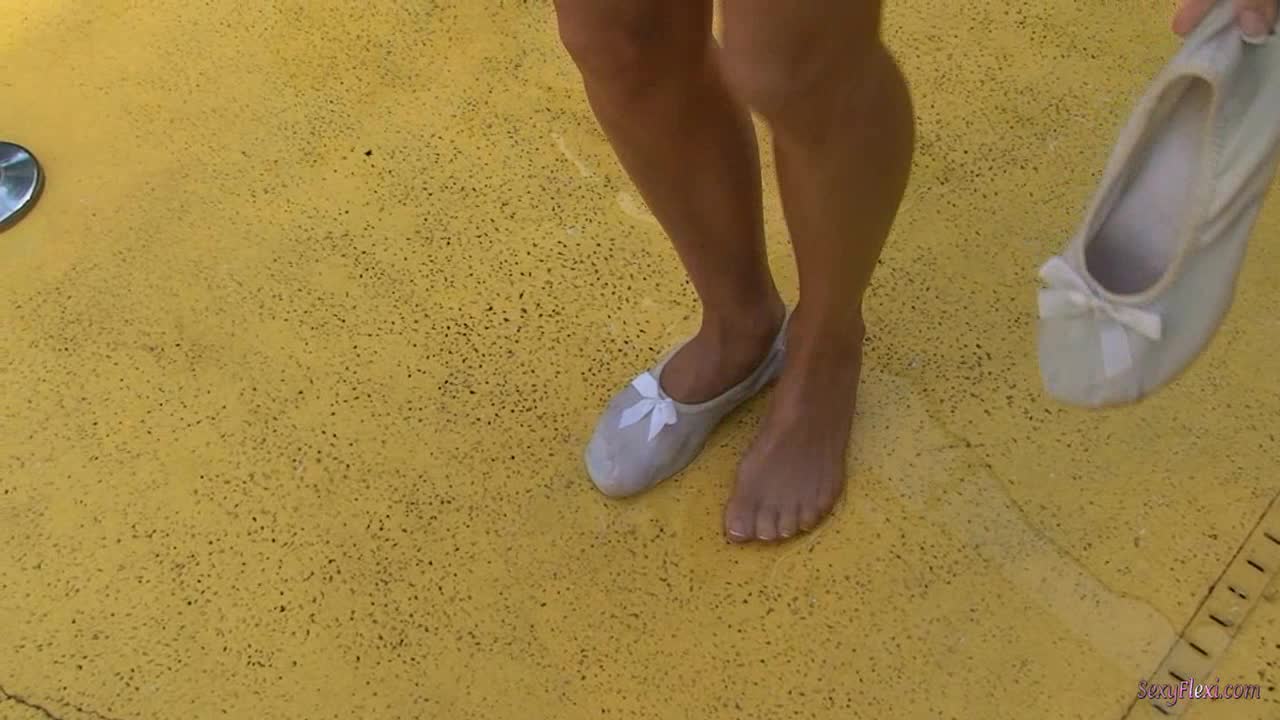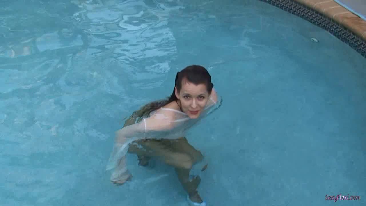 Chantelle in a see thru blouse and pantyhose in the pool.