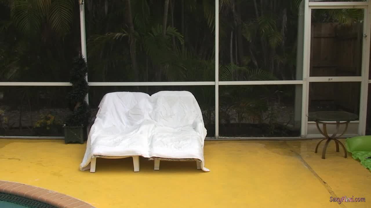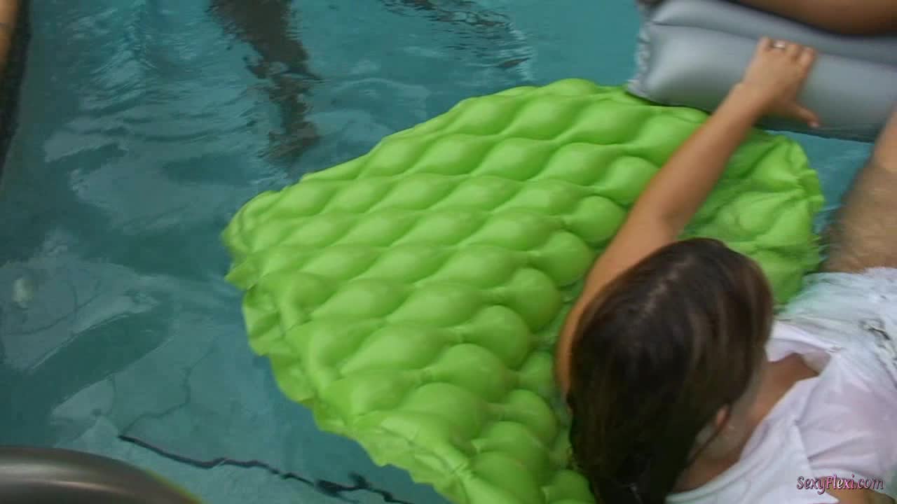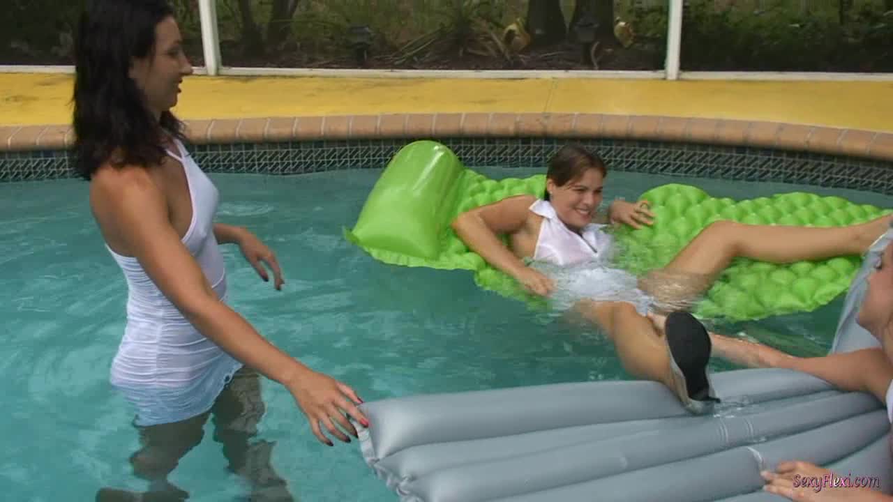 Three Girls in White part 2 - Heather and Wenona join Katie and all 3 girls play in the pool in their dresses and then strip down to their pantyhose.