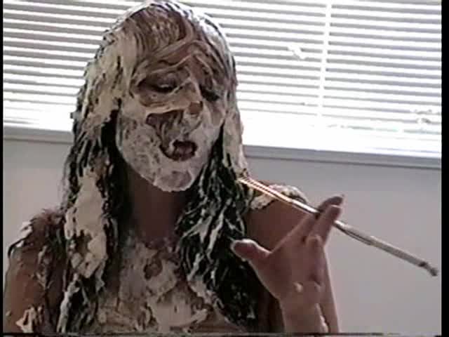 Athena's Pie Shoot - Athena gets 30 real gooey pies in her face, nude and non nude and topless as she strips while getting pied in the face. Also serious dildo action!