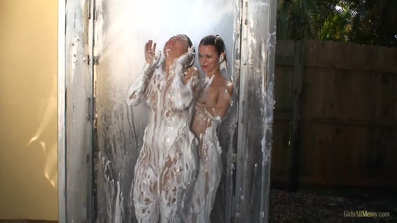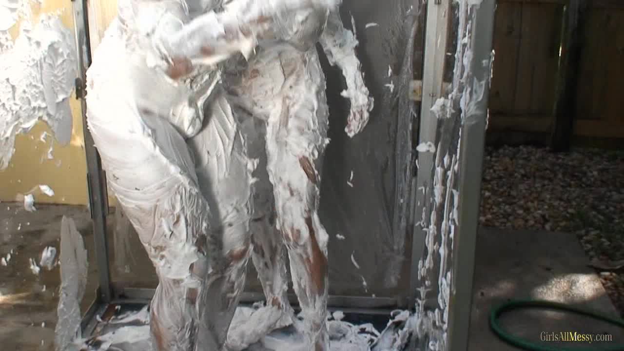 Lynn and Chantelle play with foam