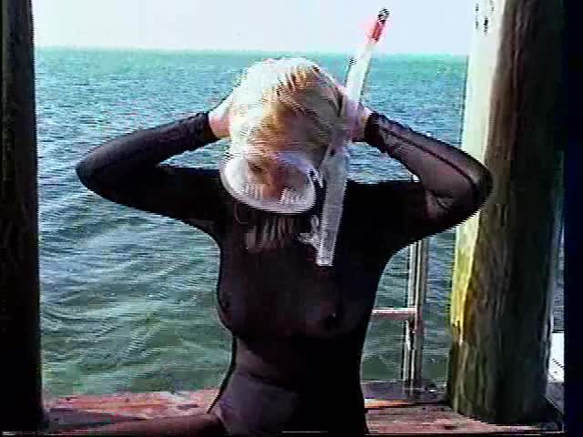 Tracie Underwater in a sheer body stocking