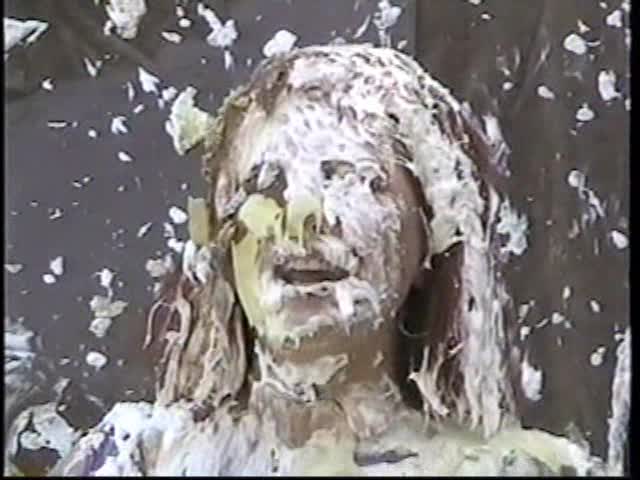 THE SCREEN TEST. Tara is directing Crystal for a pie screen test. Crystal is decked with lots of pies but fails the test. Then Tara shows how she became the best in her industry by taking many pies.