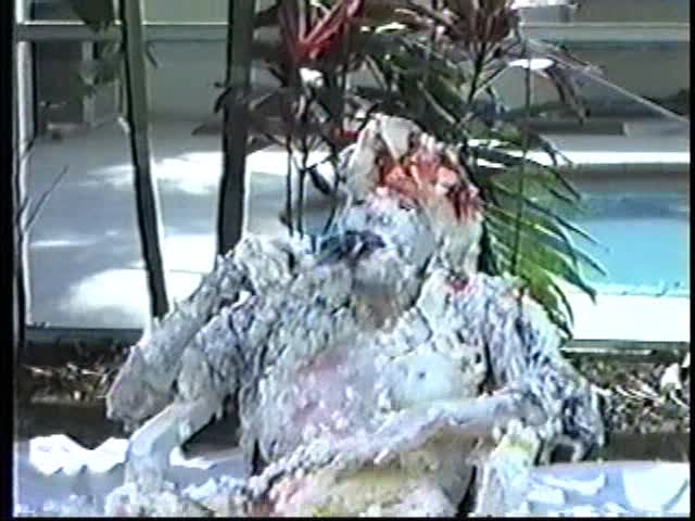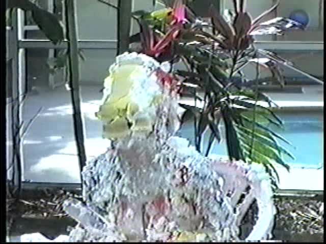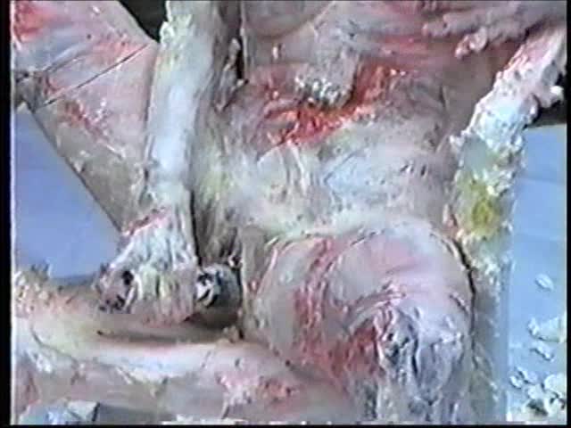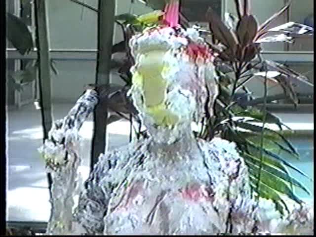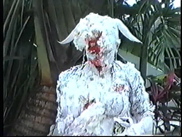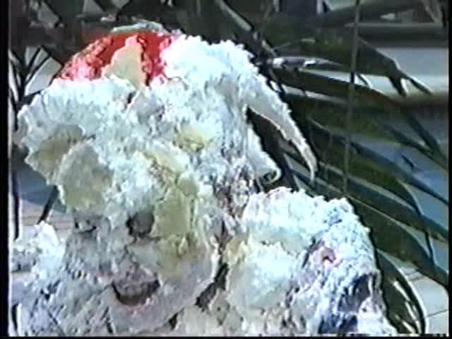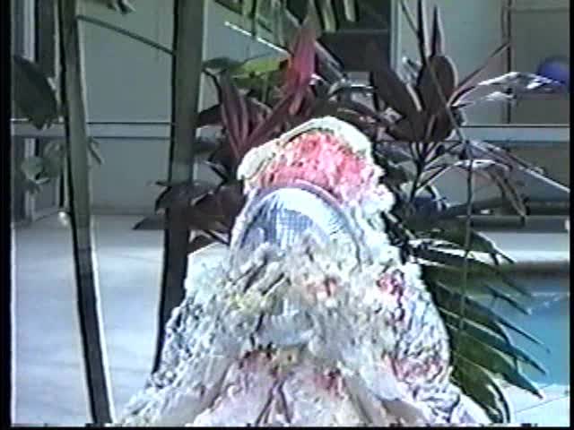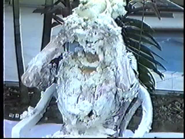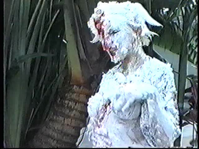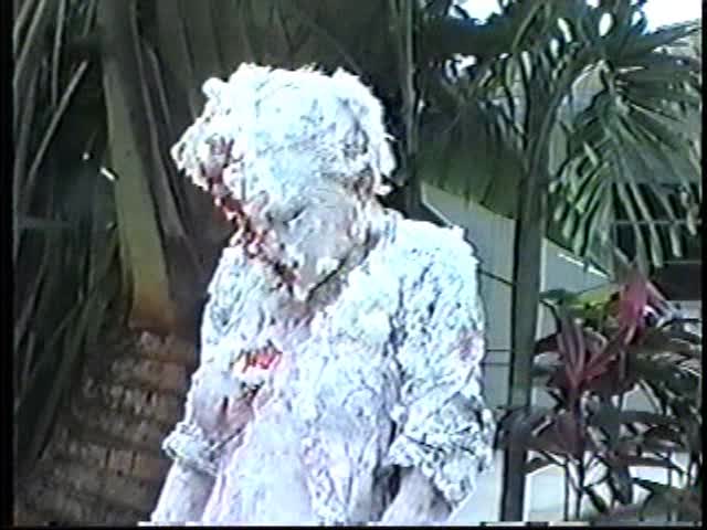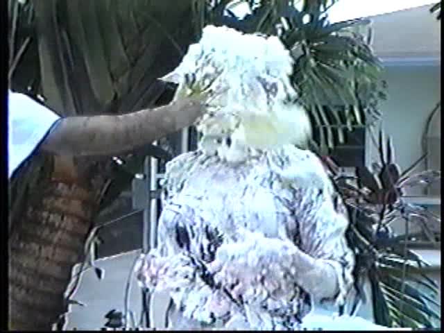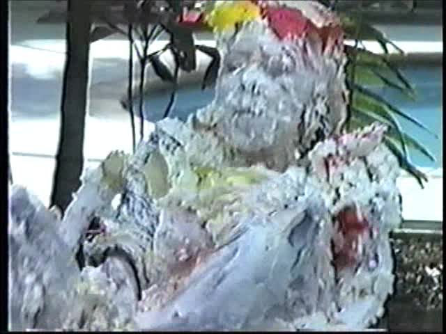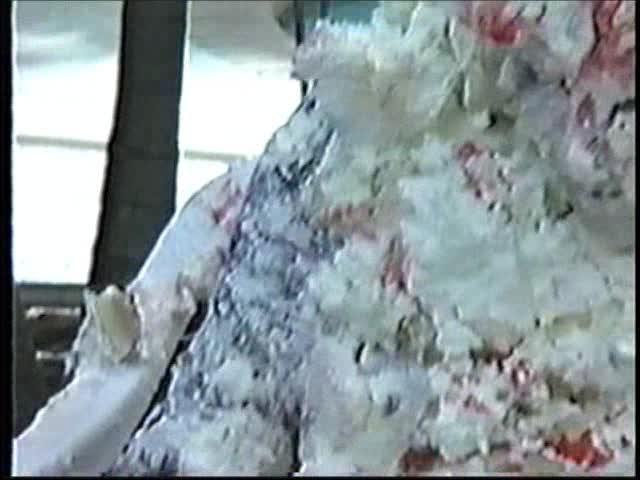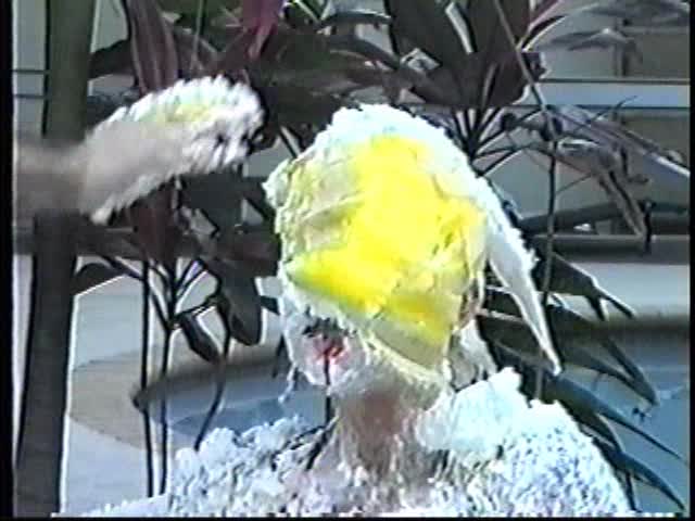 Renee dressed like Brittany Spears…and with a long black dildo…has 45 pies thrown at her.