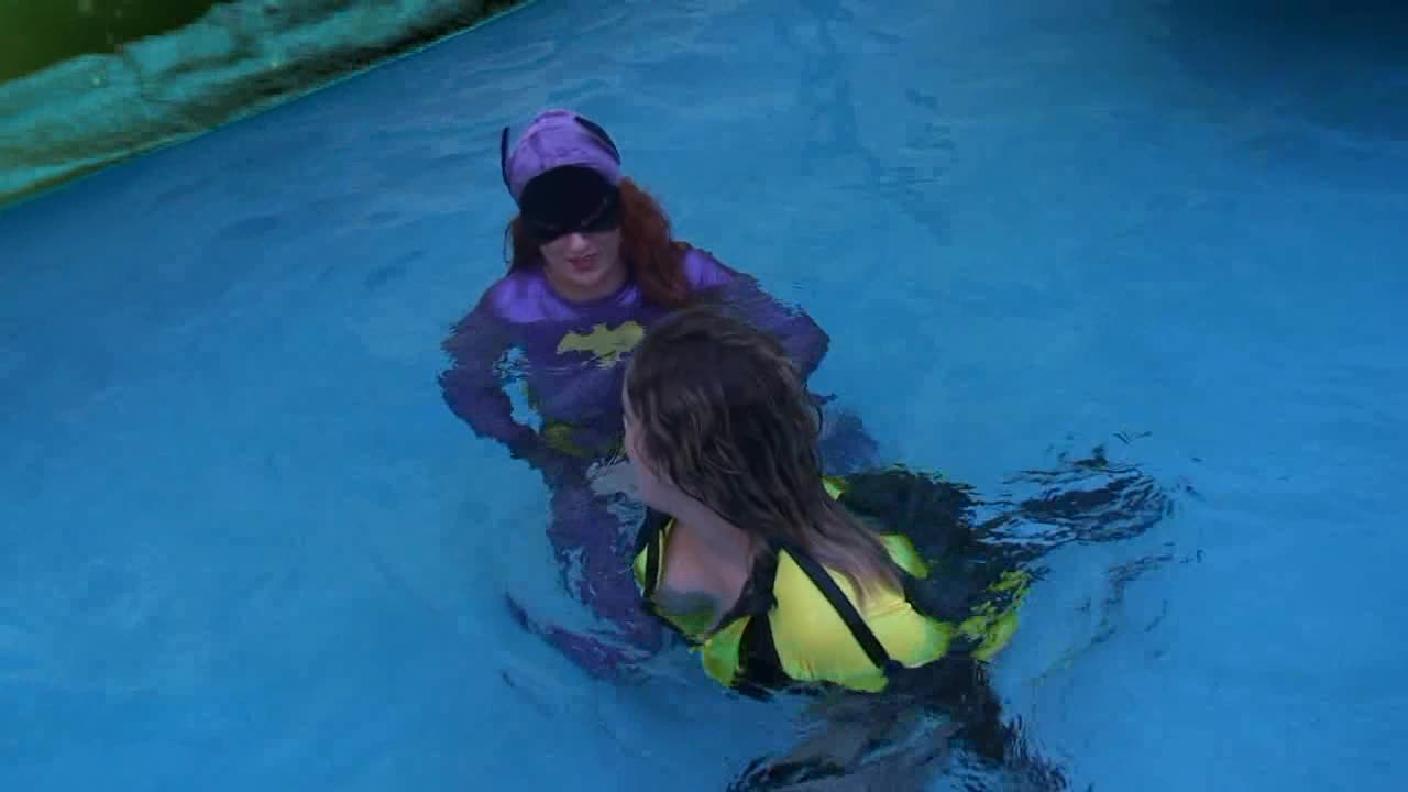 Batgirl's Crush pt 1 - Batgirl (JC Simpson) meets The Spectre (Katie) for a wetlook foreplay session