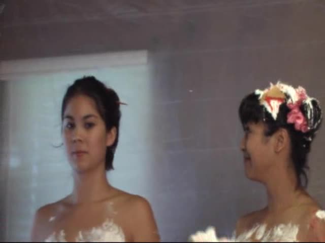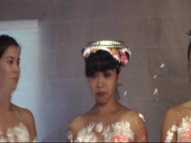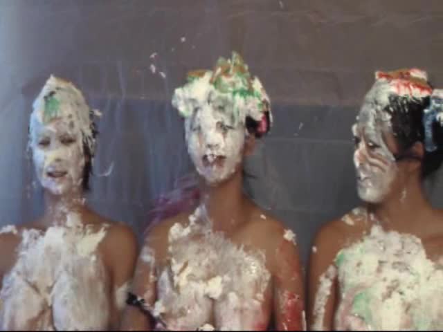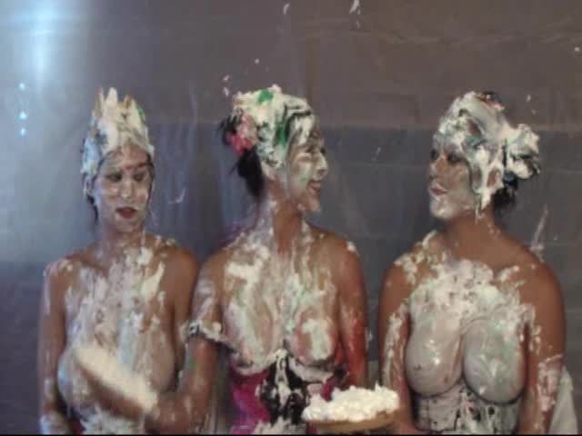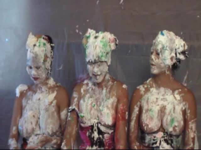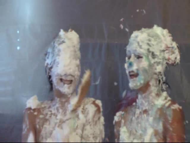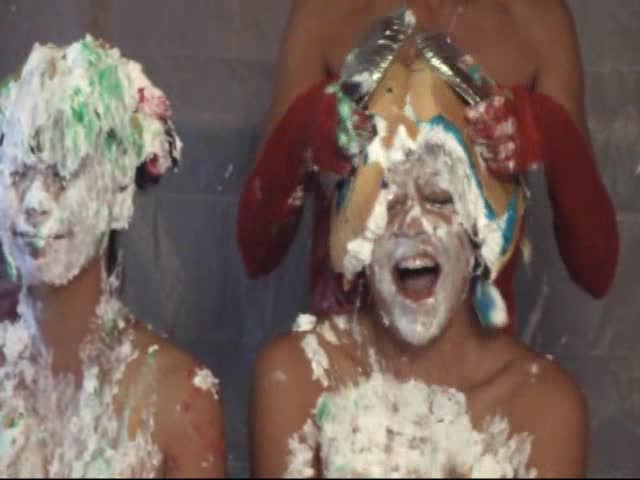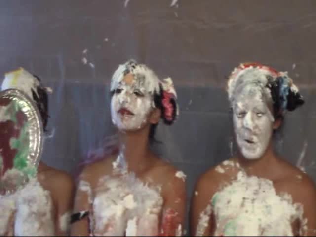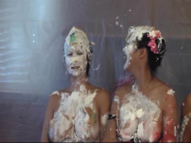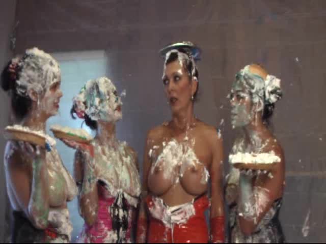 Japanese cosplay pie fight with 4 girls