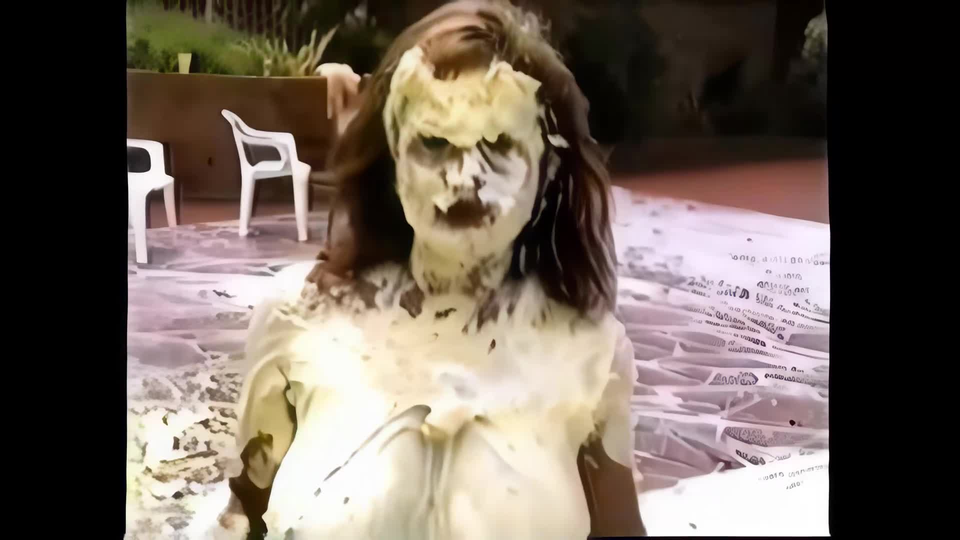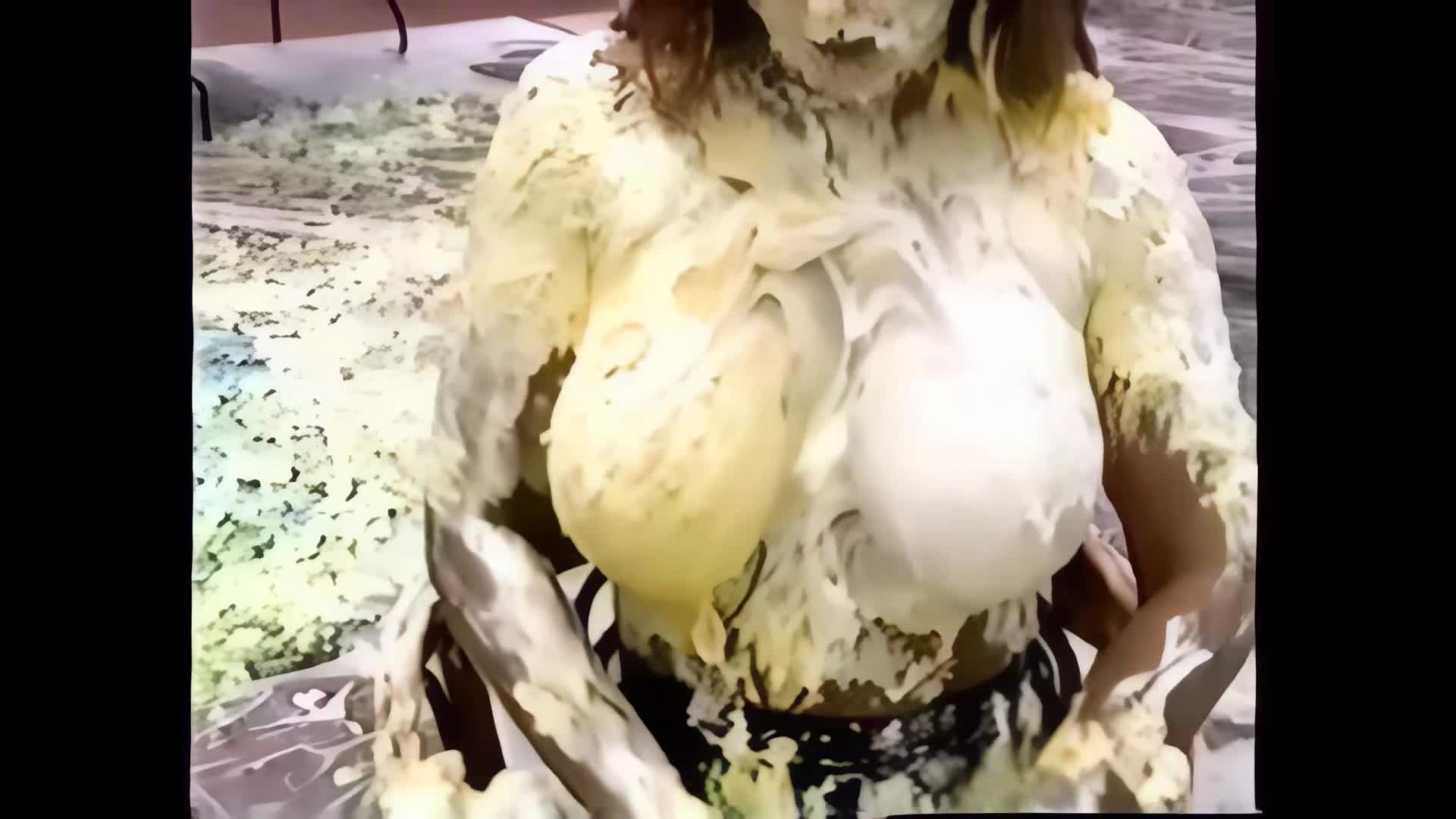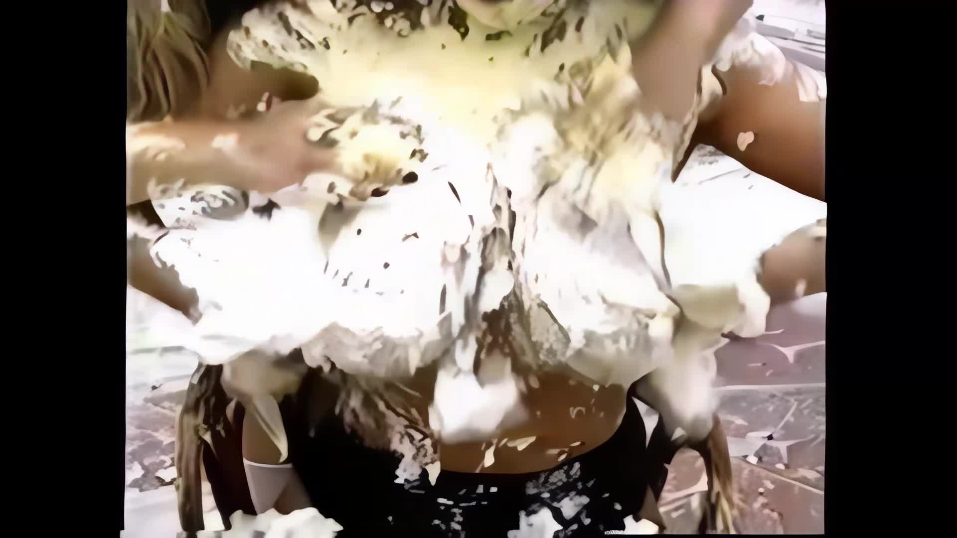 0191HD - BARSTOOL POSERS…Lana and Teresa get pied and playful with each other