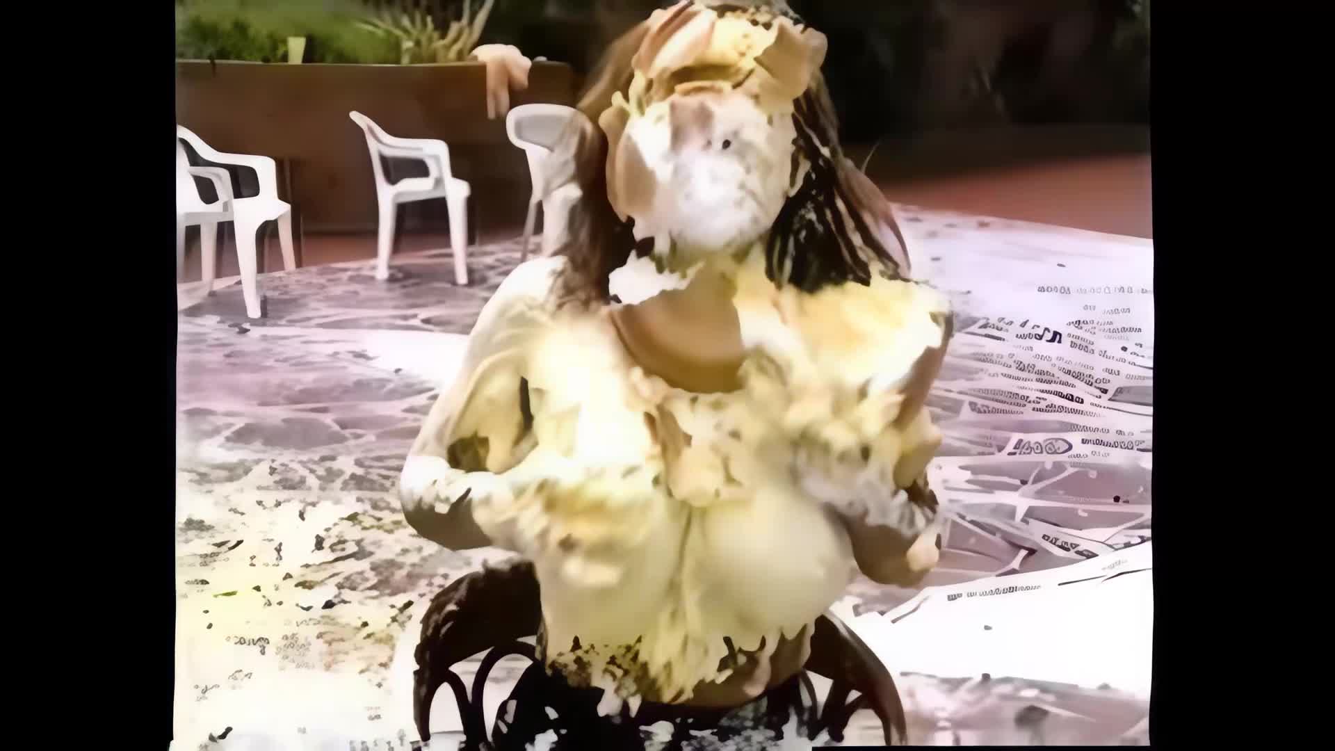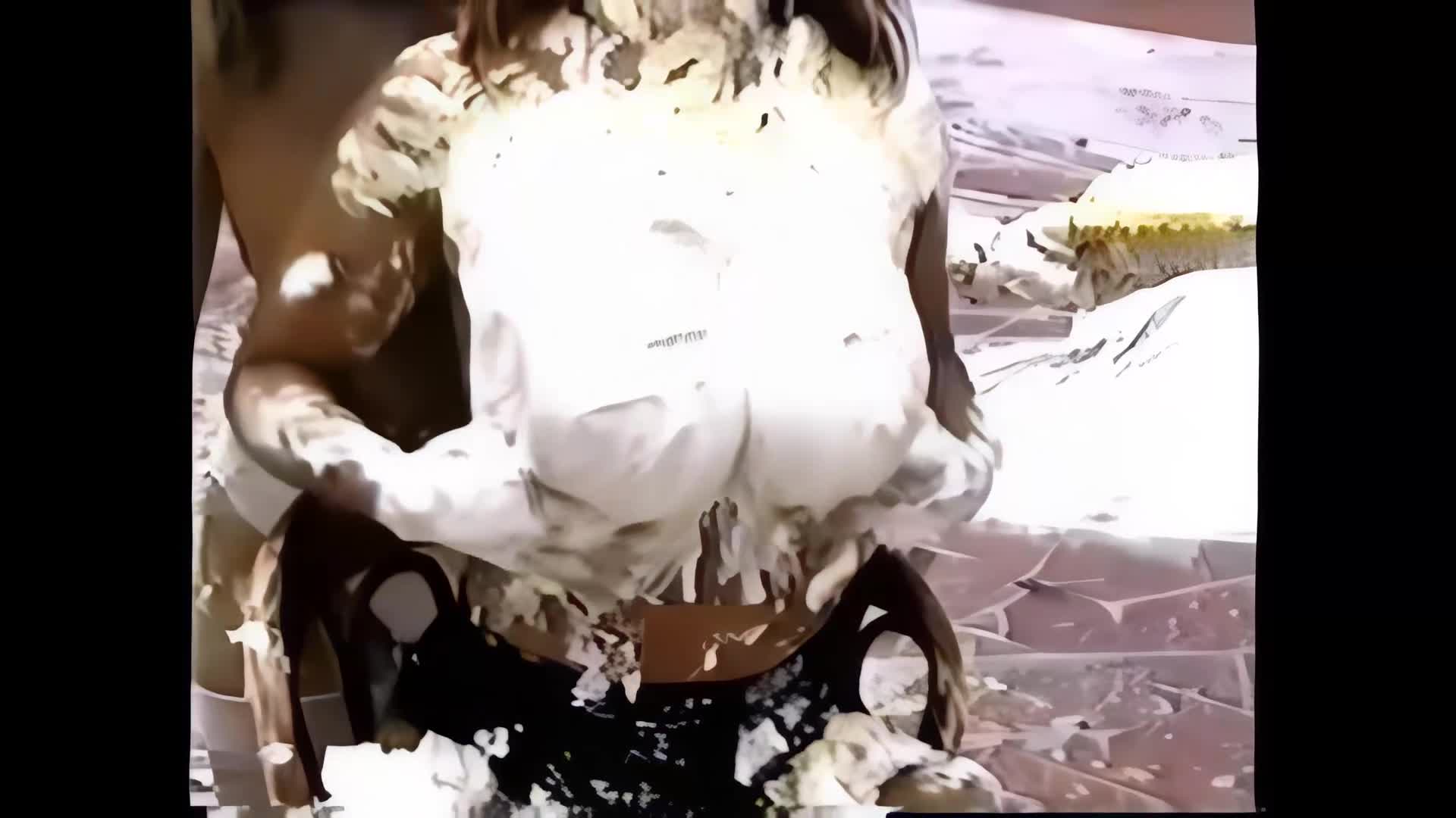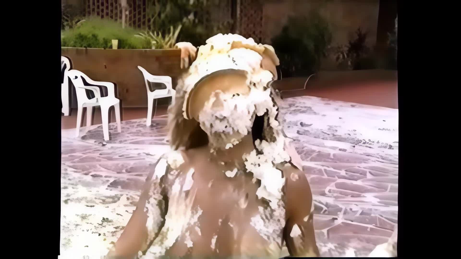 0191HD - BARSTOOL POSERS…Lana and Teresa get pied and playful with each other