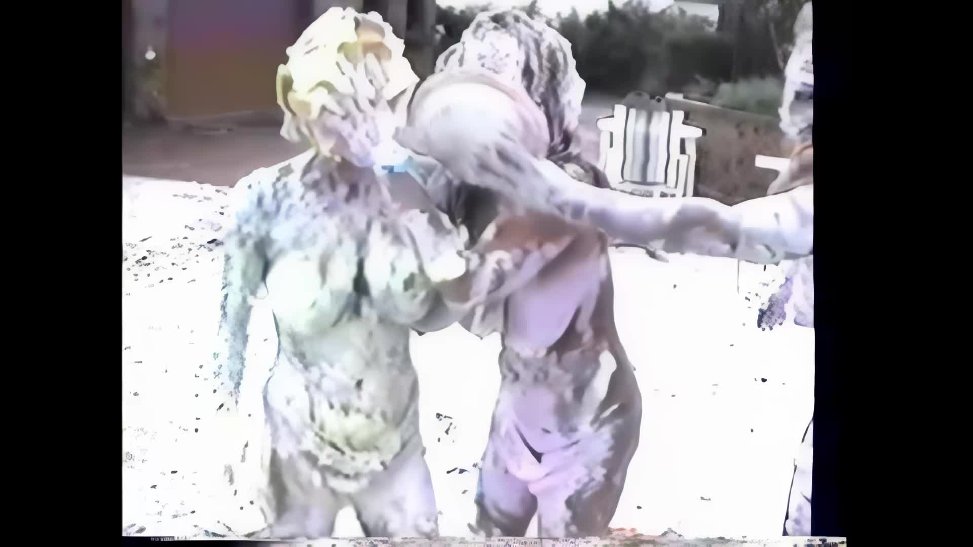 0198HD - PIE BONDAGE…Mason and Lana and Katarina are put in bondage and get egged and pied and topped off with chocolate.